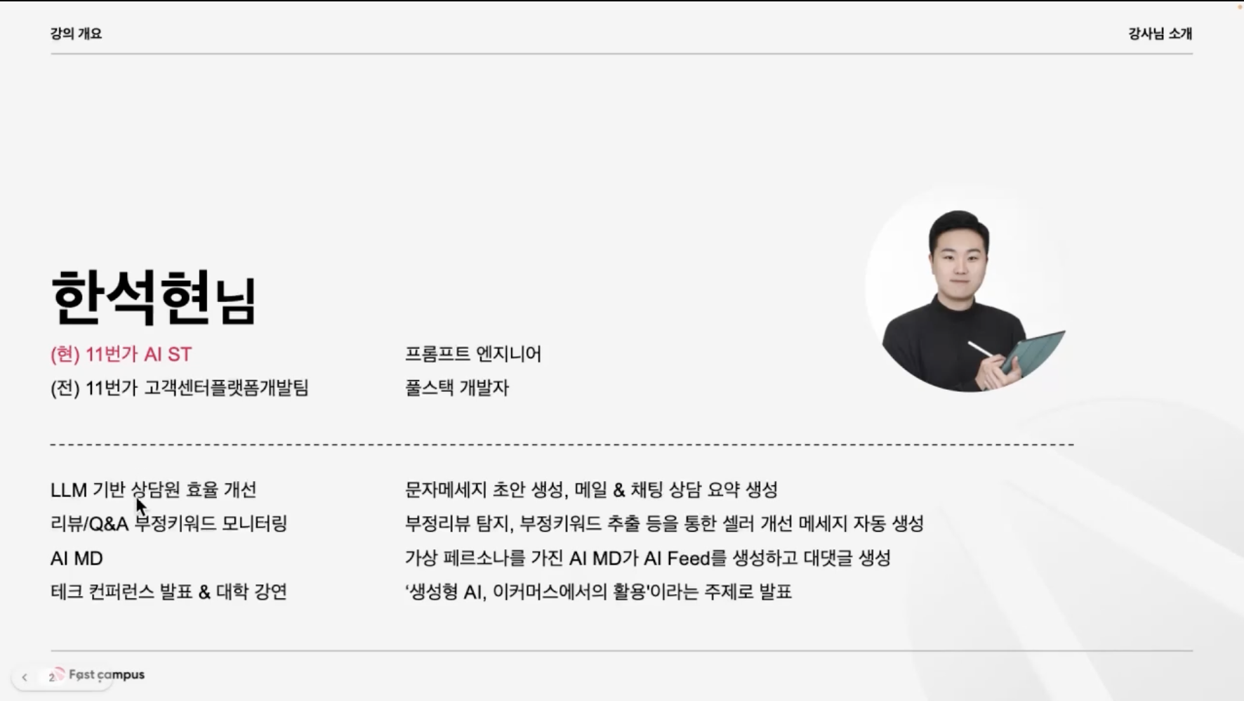 11번가에서 일하시는 한석현님께서 강의를 맡아 진행해주십니다.
